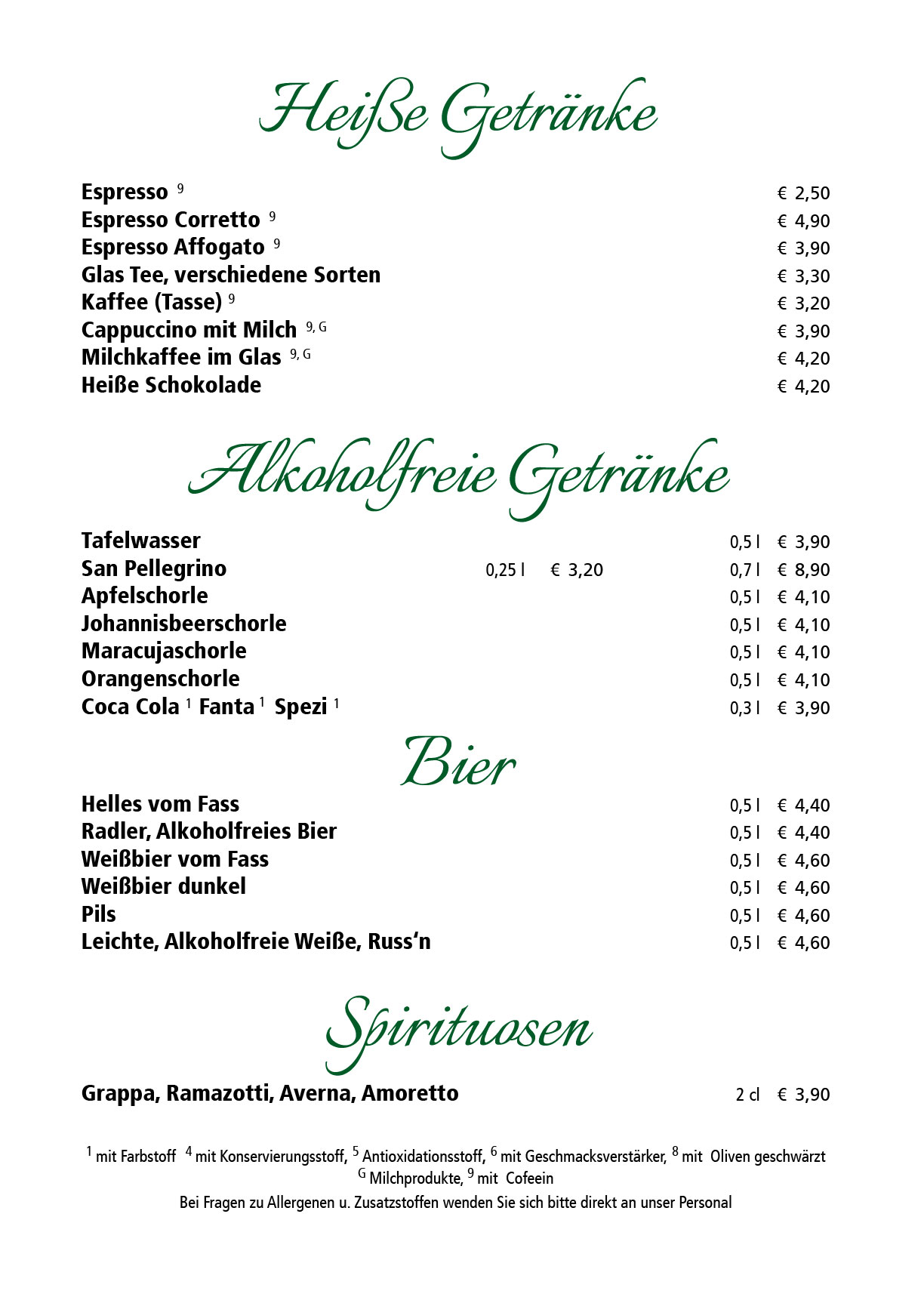 Getränkekarte